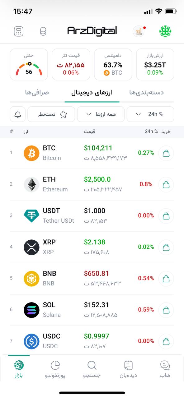 - پیگیری قیمت لحظهای ارزهای دیجیتال اصلی و محبوب