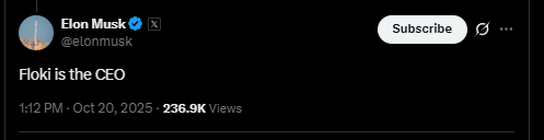Floki دوباره سر کار برگشته، به عنوان مدیرعامل X!