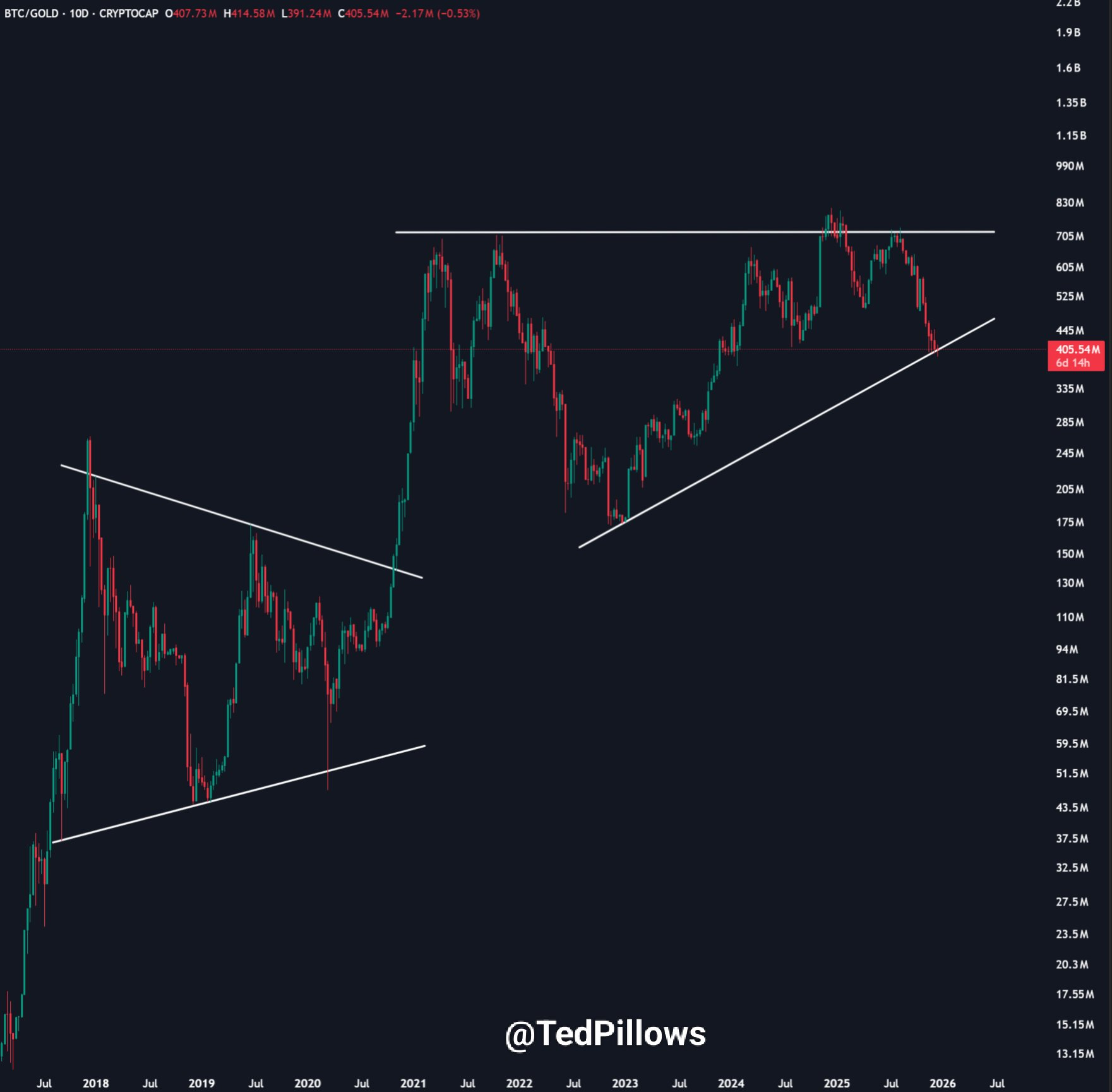 برخی تحلیلگران هشدار داده‌اند که بیت‌ کوین روند صعودی سه‌ساله خود در مقابل طلا را از دست داده است. تد پیلوز (Ted Pillows)، تریدر و کارآفرین حوزه ارز دیجیتال، نیز در توییتی به این موضوع اشاره کرد.