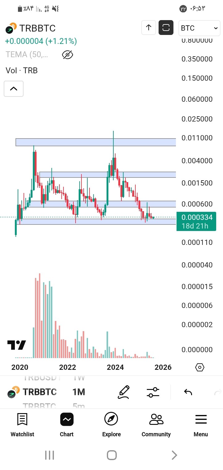در مقابل دامینسس بیت کوین در تایم بلند مدت در کف خود میباشد.خود نمودار trb نیز از کنج بلند مدت خارج شده مقاومت مهمی رو در پیش داره که زمان بگذره از این مقاومت عبور خواهد کرد و ۶۰۰ دلار را خواهد دید