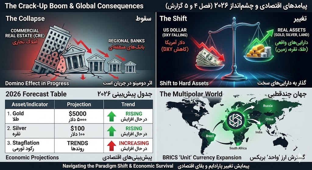 - استراتژی بقا: انتقال سرمایه از داراییهای کاغذی (سهام و اوراق) به سمت داراییهای واقعی (طلا، نقره و زمین) تنها راه حفظ قدرت خرید در این تغییر نظم پولی است.