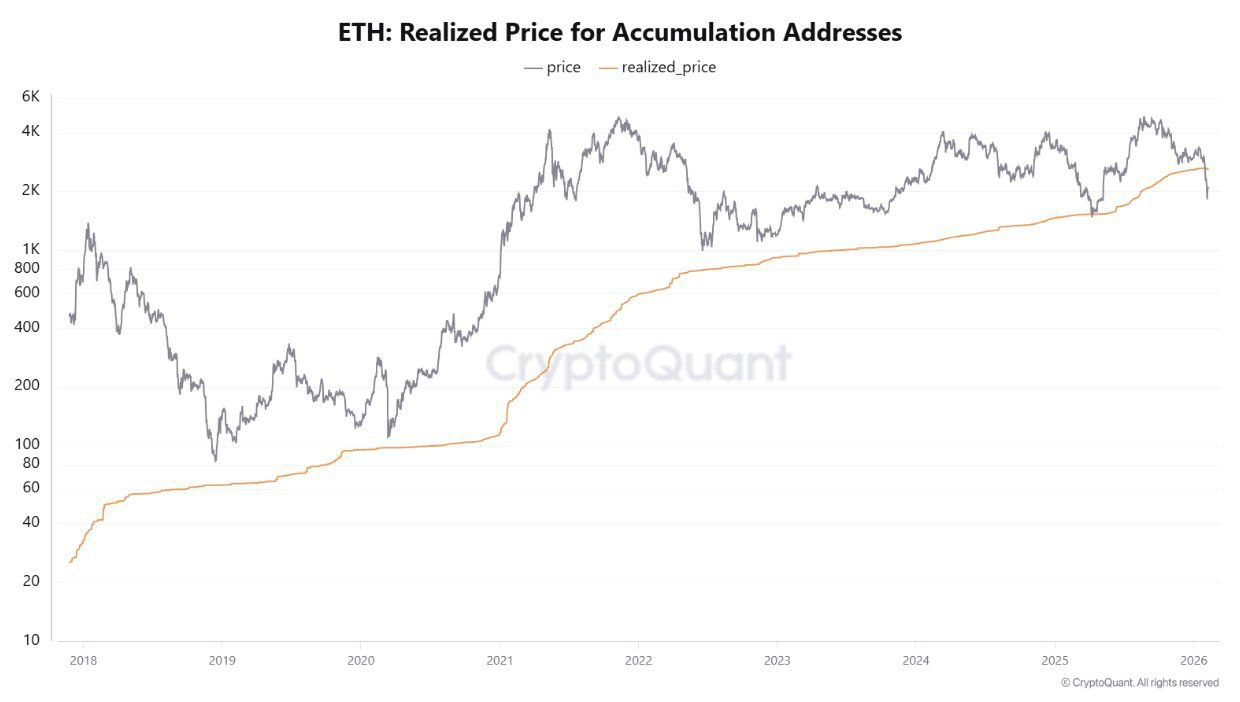 برای اولین بار از سال 2019،قیمت اتریوم به زیر میانگین خرید آدرس های انباشت رفته.